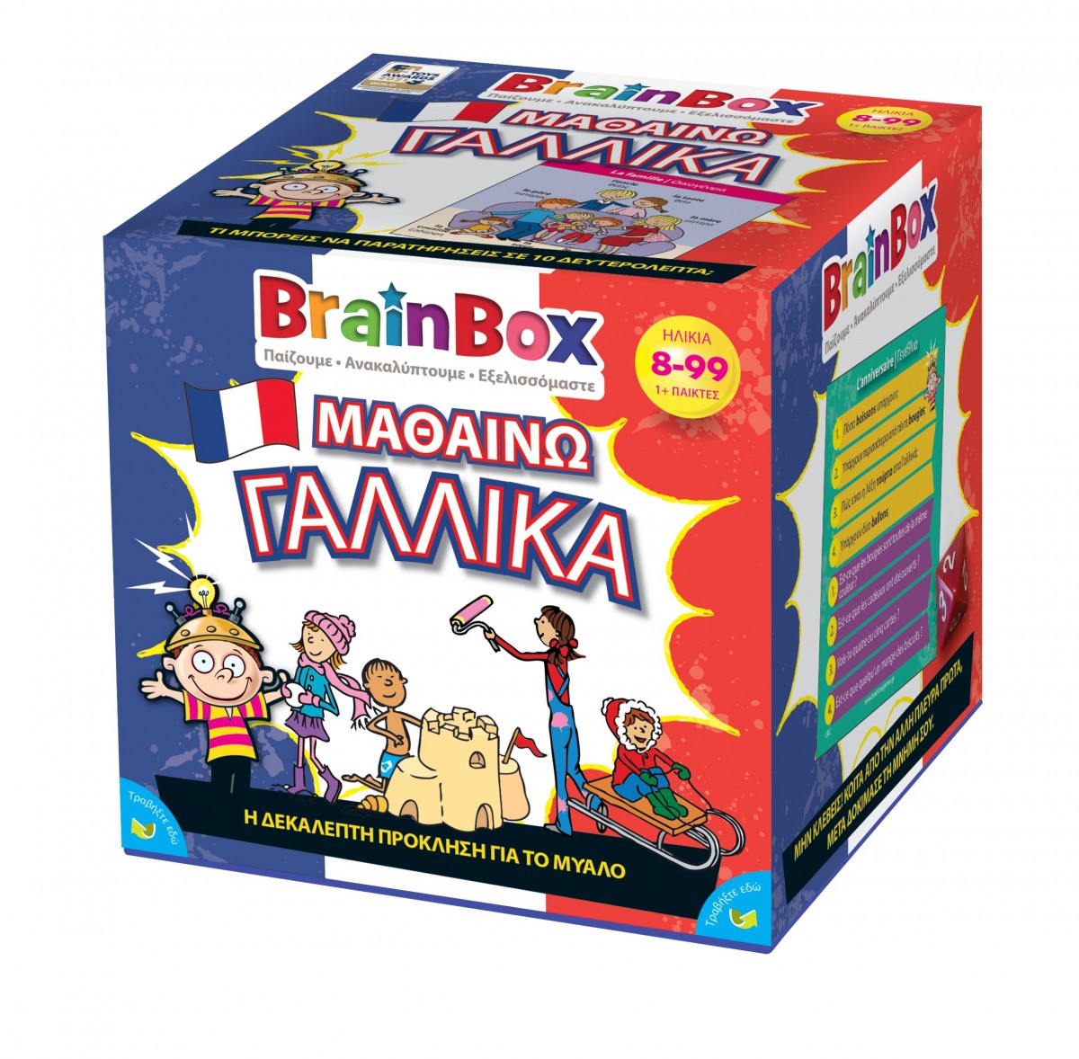 Η εκμάθηση των Γαλλικών είναι πολύ χρήσιμη καθώς οι ξένες γλώσσες αποτελούν πλέον σημαντικό κομμάτι της ζωής μας. Αυτό το BrainBox θα βελτιώσει την παρατηρητικότητα και τις μνημονικές ικανότητες των παιδιών, ενώ παράλληλα θα αναπτύξει το λεξιλόγιό τους στα Γαλλικά. Κάθε κάρτα δείχνει μία εικόνα με λέξεις στα Γαλλικά και τα Ελληνικά. Το πίσω μέρος της κάρτας έχει δύο επίπεδα ερωτήσεων, ένα για αρχάριους (επίπεδο Α1/Α2) και ένα για όσους έχουν μεγαλύτερη αυτοπεποίθηση. Αυτό το BrainBox είναι ένα διασκεδαστικό και πολύτιμο εργαλείο μάθησης. C'est bon!