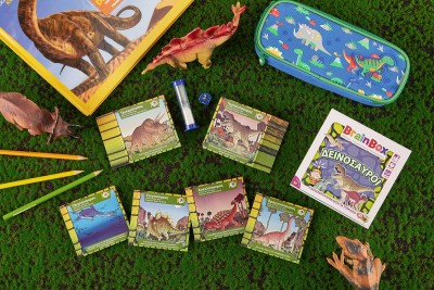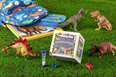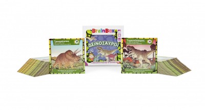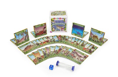 Ανακάλυψε τον κόσμο των δεινοσαύρων! Διάλεξε μία κάρτα μέσα από το BrainBox. Αναποδογύρισε την κλεψύδρα και προσπάθησε να τη μάθεις απ'έξω σε 10 δευτερόλεπτα! Τώρα ρίξε το ζάρι και απάντα στην αντίστοιχη ερώτηση. Αν απαντήσεις σωστά κρατάς την κάρτα, αν απαντήσεις λάθος βάζεις την κάρτα και πάλι μέσα στο BrainBox.