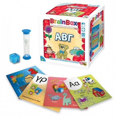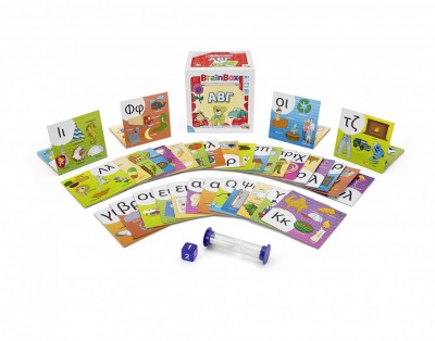 Μάθε την Άλφα-Βήτα μέσα από όμορφες εικόνες με ζωηρά χρώματα! Διάλεξε μια κάρτα μέσα από το BrainBox. Αναποδογύρισε την κλεψύδρα και προσπάθησε να μάθεις απ'έξω την κάρτα σε 10 δευτερόλεπτα! Τώρα ρίξε το ζάρι και απάντησε στην αντίστοιχη ερώτηση. Αν απαντήσεις σωστά κρατάς την κάρτα, αν απαντήσεις λάθος βάζεις την κάρτα πάλι μέσα στο BrainBox.