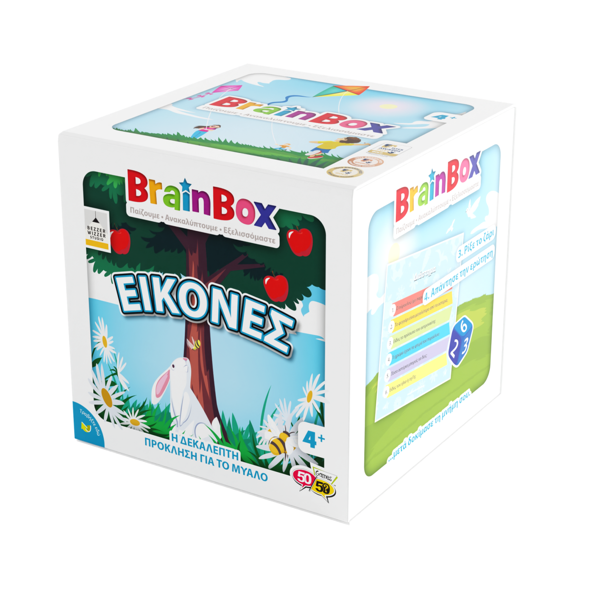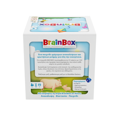 Εξάσκησε τη μνήμη σου με αυτές τις πρωτότυπες εικόνες! Διάλεξε μια κάρτα μέσα από το BrainBox. Αναποδογύρισε την κλεψύδρα και προσπάθησε να τη μάθεις απ'έξω σε 10 δευτερόλεπτα! Τώρα ρίξε το ζάρι και απάντησε στην αντίστοιχη ερώτηση. Αν απαντήσεις σωστά κράτα την κάρτα, αν απαντήσεις λάθος βάλε την κάρτα πάλι μέσα στο BrainBox.
