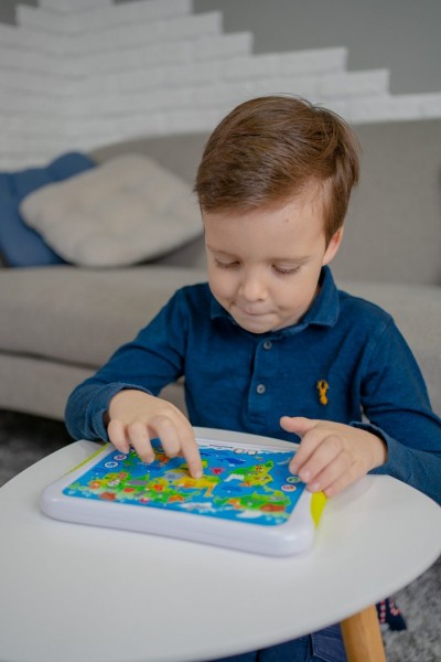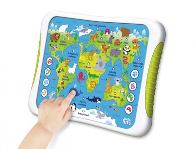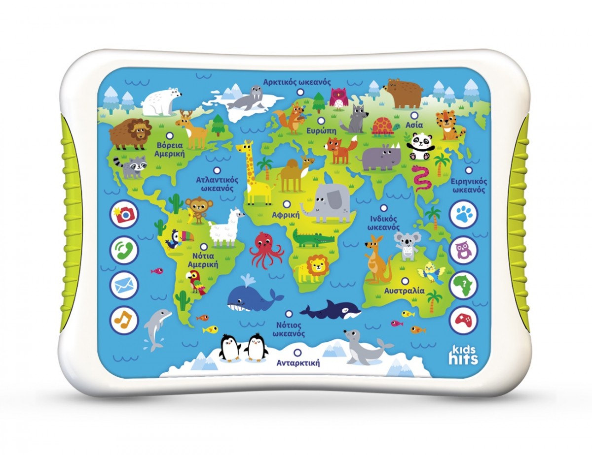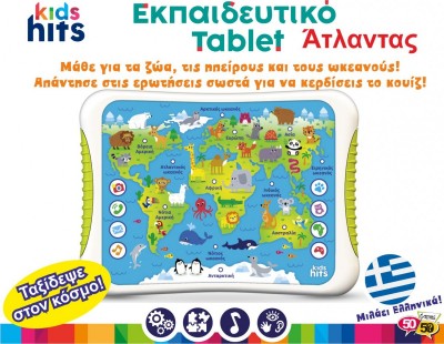 Το Tablet Άτλαντας είναι ένα εκπαιδευτικό διαδραστικό παιχνίδι που εισάγει το παιδί στον κόσμο της γνώσης! Με αυτό το πρωτότυπο παιχνίδι tablet το παιδί μαθαίνει ενδιαφέρουσες πληροφορίες για τα ζώα του κόσμου, τις ηπείρους και τους ωκεανούς. Ο πολύχρωμος σχεδιασμός, οι ήχοι ζώων και οι πρωτότυπες μελωδίες προσφέρουν ώρες ψυχαγωγίας, βοηθώντας στην ανάπτυξη των αισθητηριακών δεξιοτήτων και της λογικής. Το πρακτικό σχήμα και η ποικιλία εκπαιδευτικού περιεχομένου και κουίζ, κάνουν το Tablet Άτλαντα ένα από τα δημοφιλέστερα παιχνίδια!
