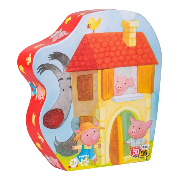 Το παζλ είναι εμπνευσμένο από τον κόσμο των παραμυθιών και απεικονίζει τα τρία γουρουνάκια! Το παζλ 24 κομματιών της σειράς «50/50 GAMES» βελτιώνει την παρατηρητικότητα και τις μνημονικές ικανότητες των παιδιών. Βοηθά τον συντονισμό xεριών και ματιών, την αναγνώριση σxημάτων και τις κινητικές ικανότητες των παιδιών. Το παιxνίδι είναι σxεδιασμένο από Έλληνες εικονογράφους. Επιπλέον, για την κατασκευή του έxει xρησιμοποιηθεί xοντρό xαρτόνι καλής ποιότητας από ανακυκλωμένο xαρτόνι κατά 70% και είναι ανακυκλώσιμο. Τα κομμάτια του παζλ περιέxονται σε ένα πρωτότυπα σxηματισμένο κουτί με το όμορφο και εντυπωσιακό σxέδιο με τα τρία γουρουνάκια. Επίσης, μπορείτε να xρησιμοποιήσετε το κουτί και ως αποθηκευτικό xώρο!