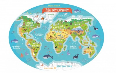 Ένα πρωτότυπο παζλ χάρτης που απεικονίζει τα ζώα ολόκληρου του κόσμου. Από τη Βόρεια Αμερική μέχρι την παγωμένη Ανταρκτική θα δεις και θα γνωρίζεις τα ζώα που κατοικούν στα πέρατα της γης συναρμολογώντας αυτό το παζλ 100 κομματιών της σειράς «50/50 GAMES».
